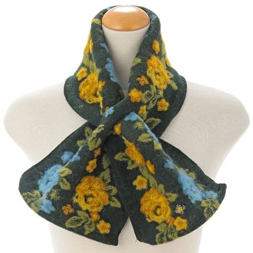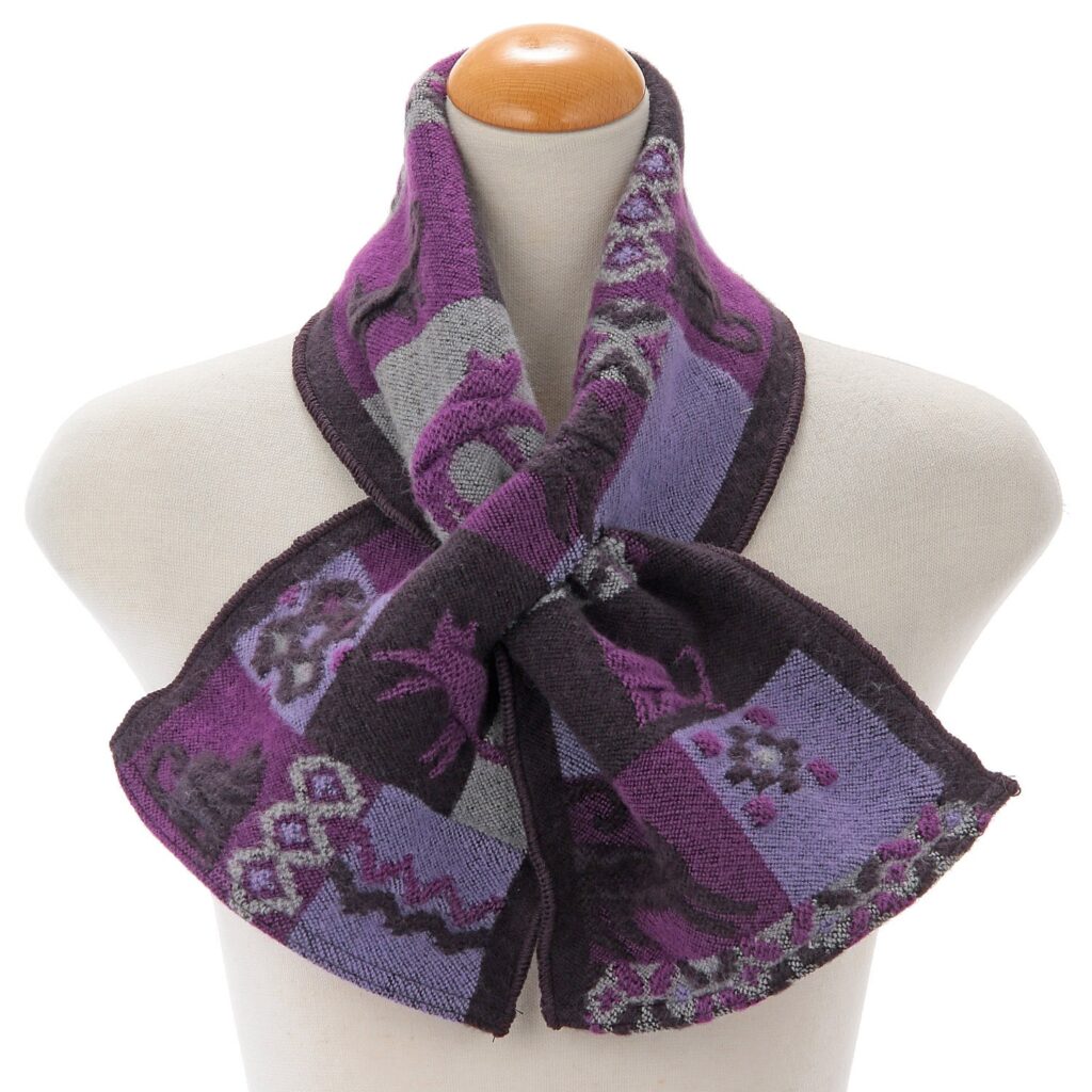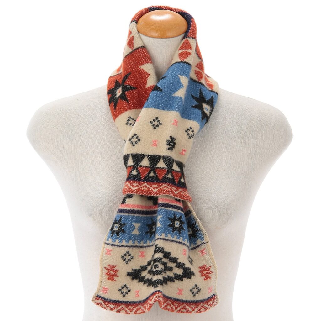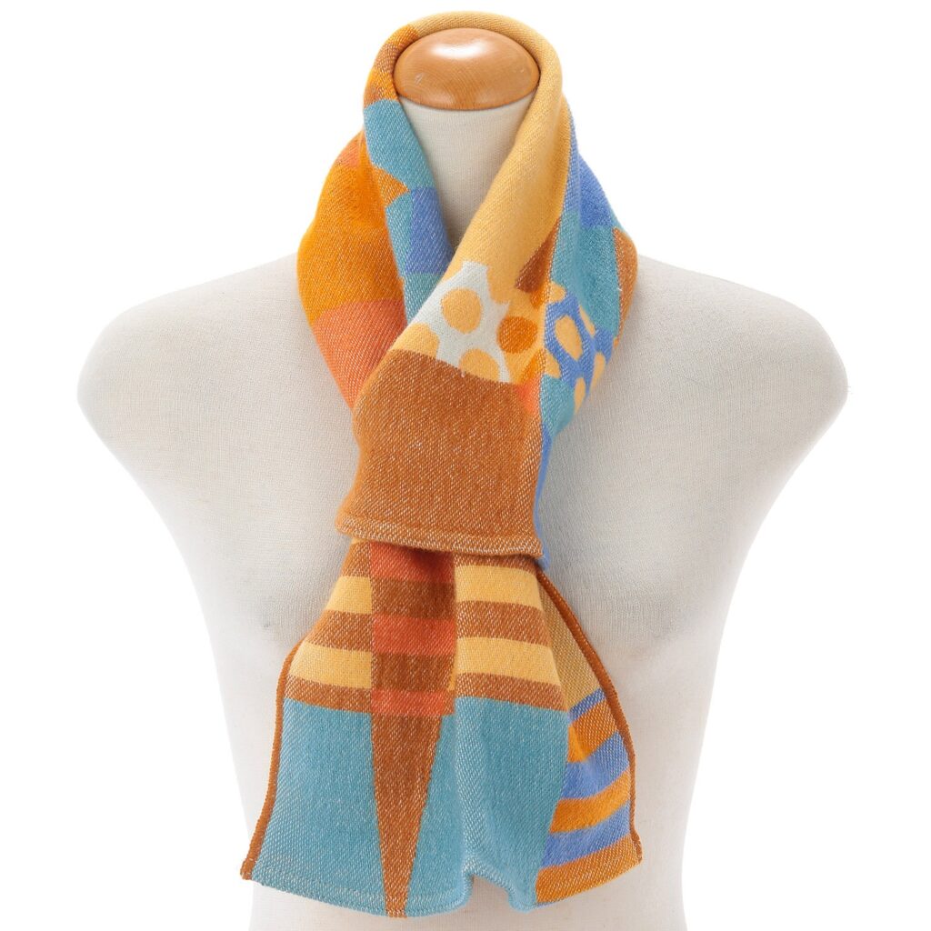クロスした両端が広がって見えるので、プチマフラーよりもボリューミーな印象を与えてくれます。片側にある2つの穴に、もう片側を差し込むタイプで、こちらもプチマフラーと同じく、簡単に綺麗な形を作ることができます。ラシクモアの鮮やかな柄をしっかりと見せてくれるので、シンプルなコーディネートに合わせると華やかアクセントになります。