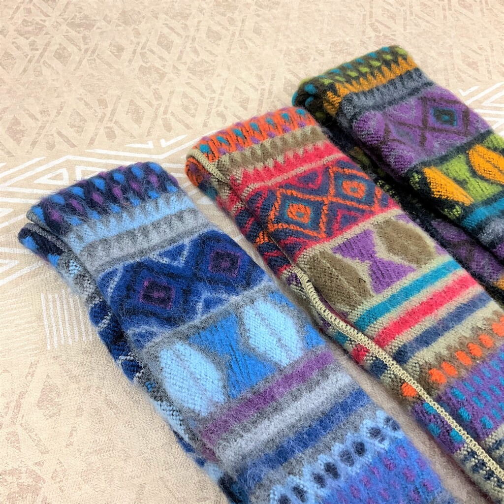 『エスニック』は、繊細に描かれたエスニック模様が美しいデザイン。フランスの工場で糸から選んでいるからこそ実現できた豊かな色彩と細かな模様が、ワンランク上のコーディネートを引き出します。毎年ご好評につき完売となる人気柄で、「色々種類を入れてみるけど、やっぱりこれが人気!」とのお声をいただいています。
