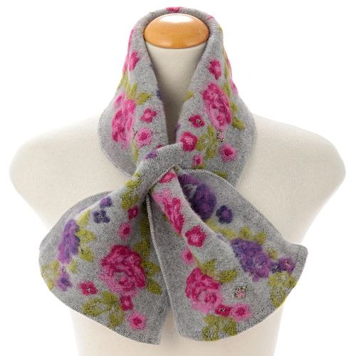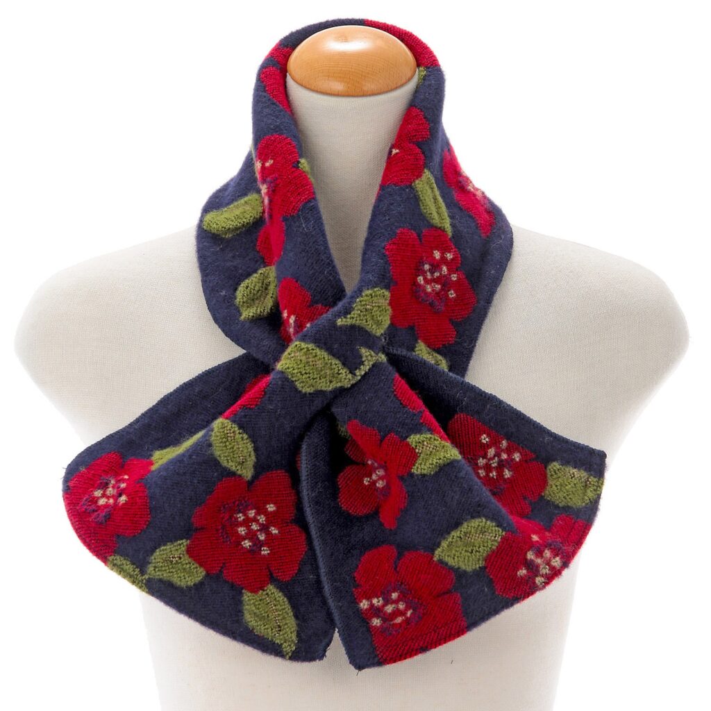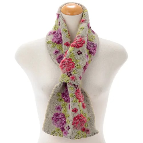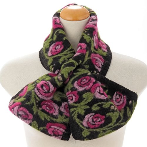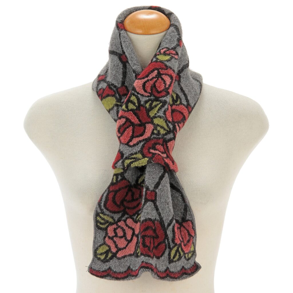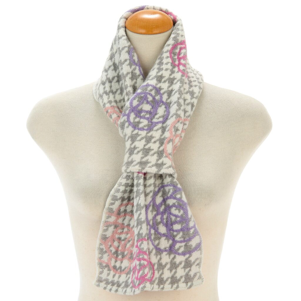 ダブルローズはプチマフラー、クロスマフラー、ハンドウォーマーの3型をご用意しています。他の柄は2型展開が中心のため、3型が揃うダブルローズは、コーディネート提案の幅が広がるシリーズになっています。