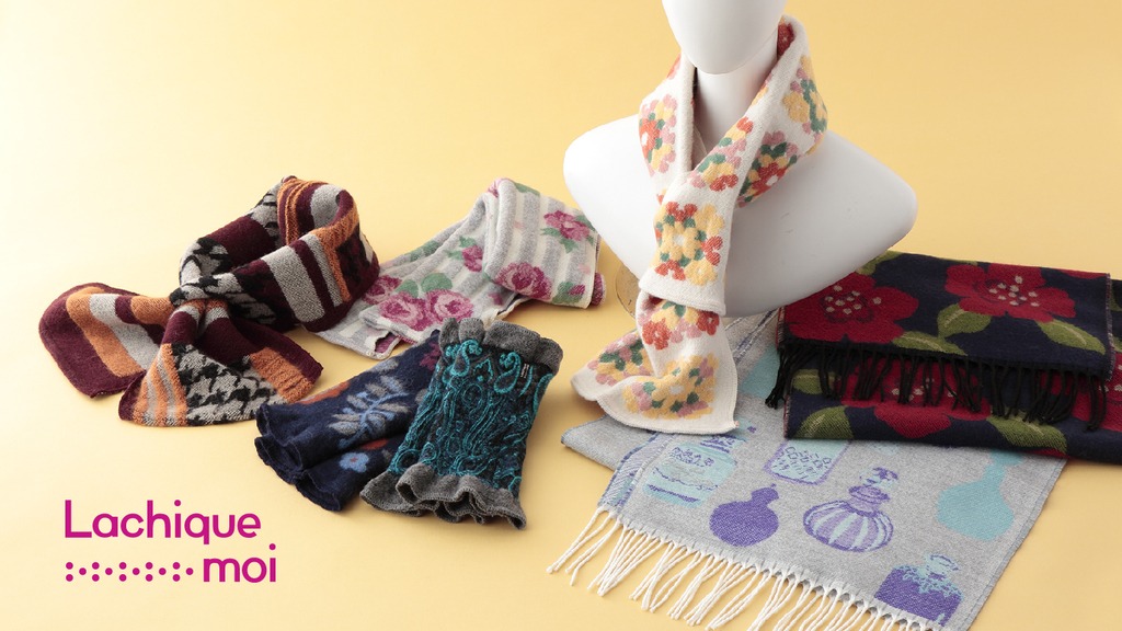 エトワール海渡のファッション雑貨ブランド『Lachique moi(ラシクモア)』のアイテムを店頭に取り入れてみませんか?ラシクモアが展開するマフラーやハンドウォーマーは、特有のカラフルな色使いと、絵画のように繊細な柄で、秋冬のコーディネートを華やかに彩ります。