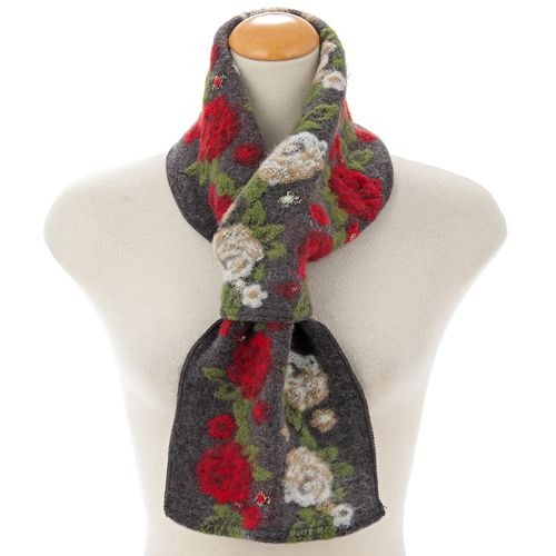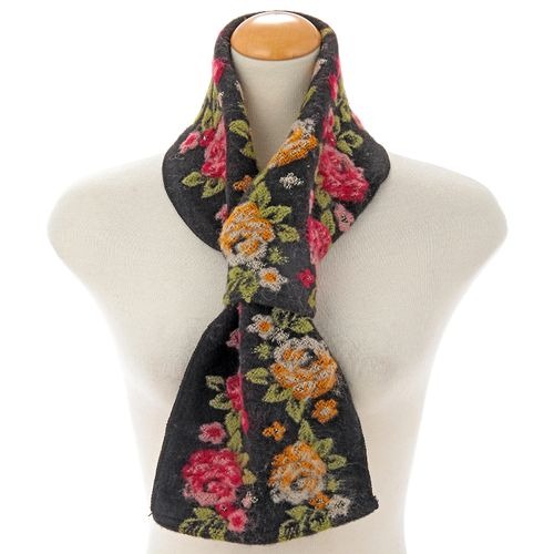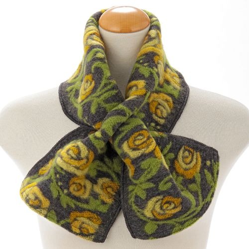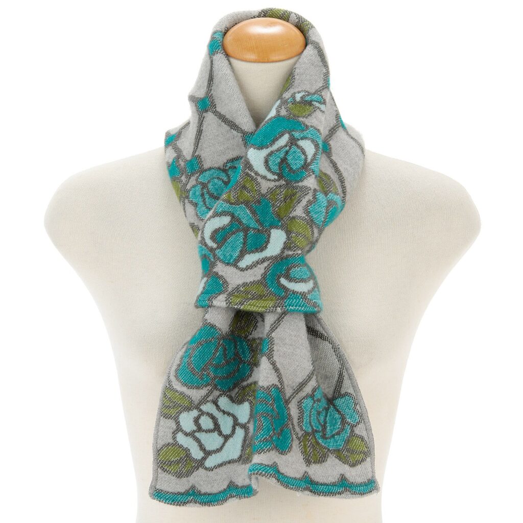 首元にゴージャスな印象を与えてくれる『ダマスクスローズ』。ゴージャスな薔薇にツタ模様が描かれ、クラシカルな雰囲気が楽しめます。ダマスクスローズのクロスマフラーは、ボリューム感もプラスされ、より華やかな印象に。ミセスらしい品のあるデザインが、秋冬のコーディネートを引き締めてくれます。