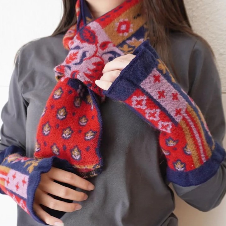 プチマフラー・クロスマフラーとハンドウォーマーは、おそろいで楽しめるよう同じ柄をご用意しています。セットで合わせることで、統一感のあるコーディネートを演出できます。仕入れの際はセットで取り入れ、店頭ではコーディネート提案として展開するのもおすすめです。