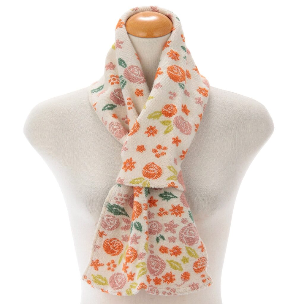 ダブルローズはプチマフラー、クロスマフラー、ハンドウォーマーの3型をご用意しています。他の柄は2型展開が中心のため、3型が揃うダブルローズは、コーディネート提案の幅が広がるシリーズになっています。