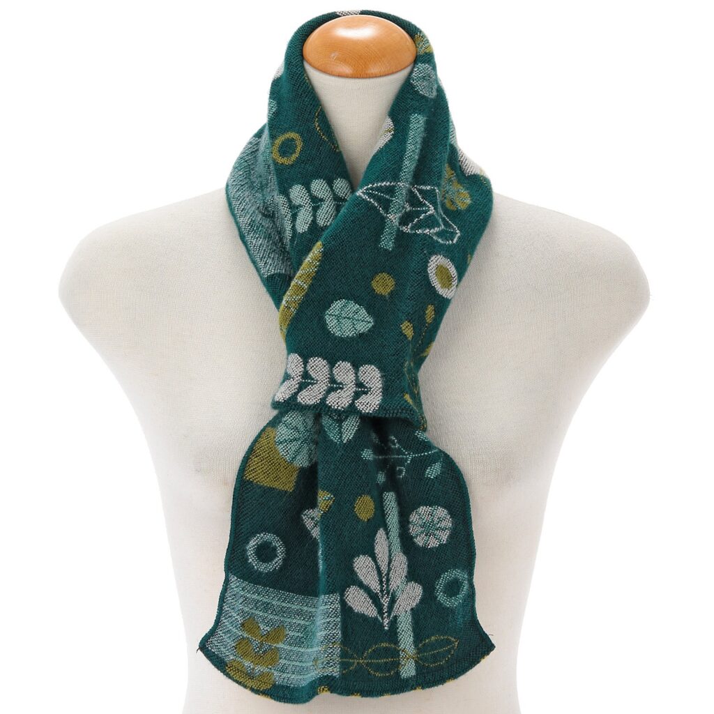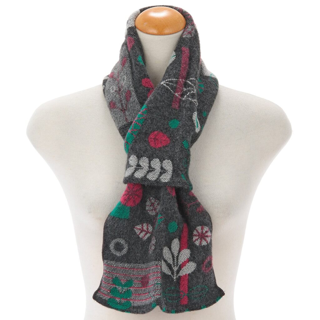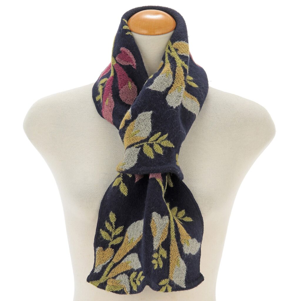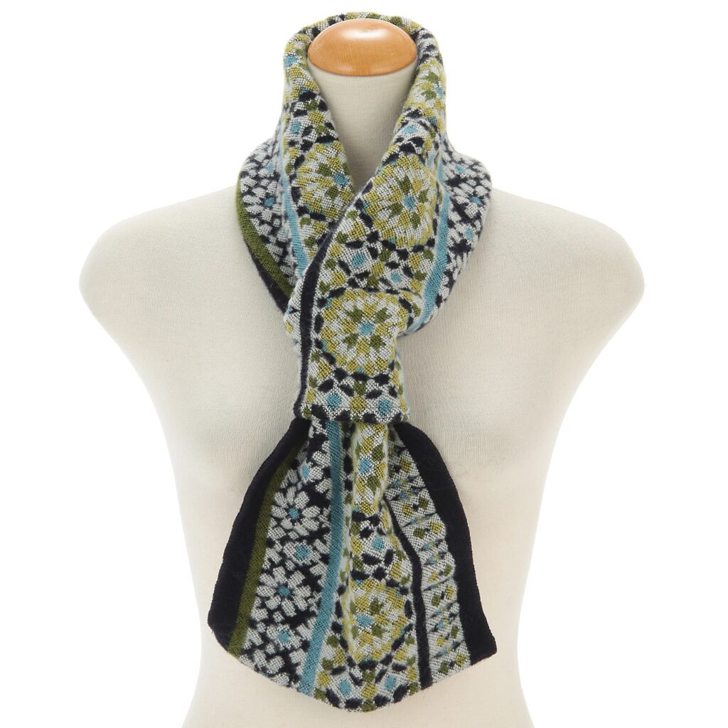 クロスした両端が広がって見えるので、プチマフラーよりもボリューミーな印象を与えてくれます。片側にある2つの穴に、もう片側を差し込むタイプで、こちらもプチマフラーと同じく、簡単に綺麗な形を作ることができます。ラシクモアの鮮やかな柄をしっかりと見せてくれるので、シンプルなコーディネートに合わせると華やかアクセントになります。