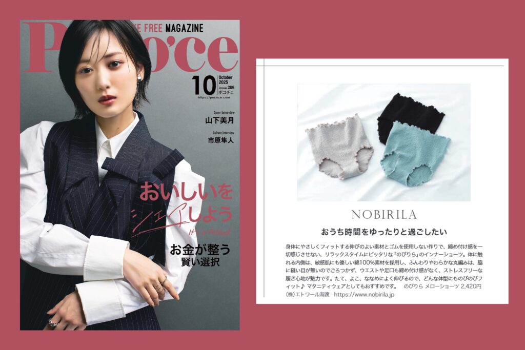 この度、フリーマガジン「Poco’ce(ポコチェ)」10月号(2025年9月25日発行)に、エトワール海渡オリジナル商品「のびりら メローショーツ」が掲載されました! web版を読む