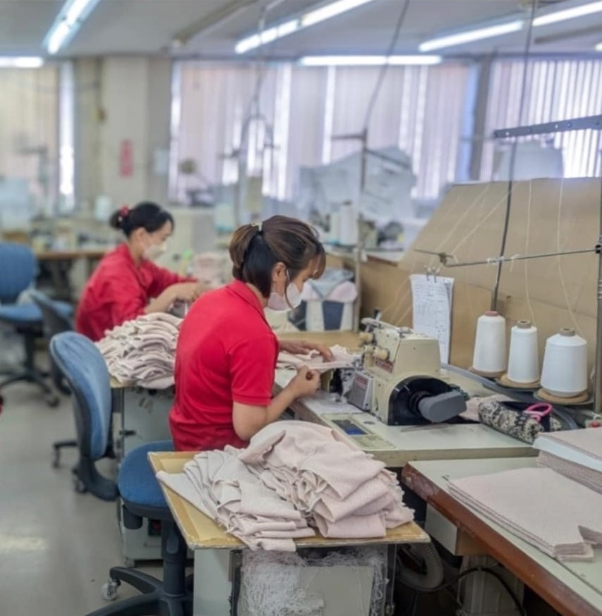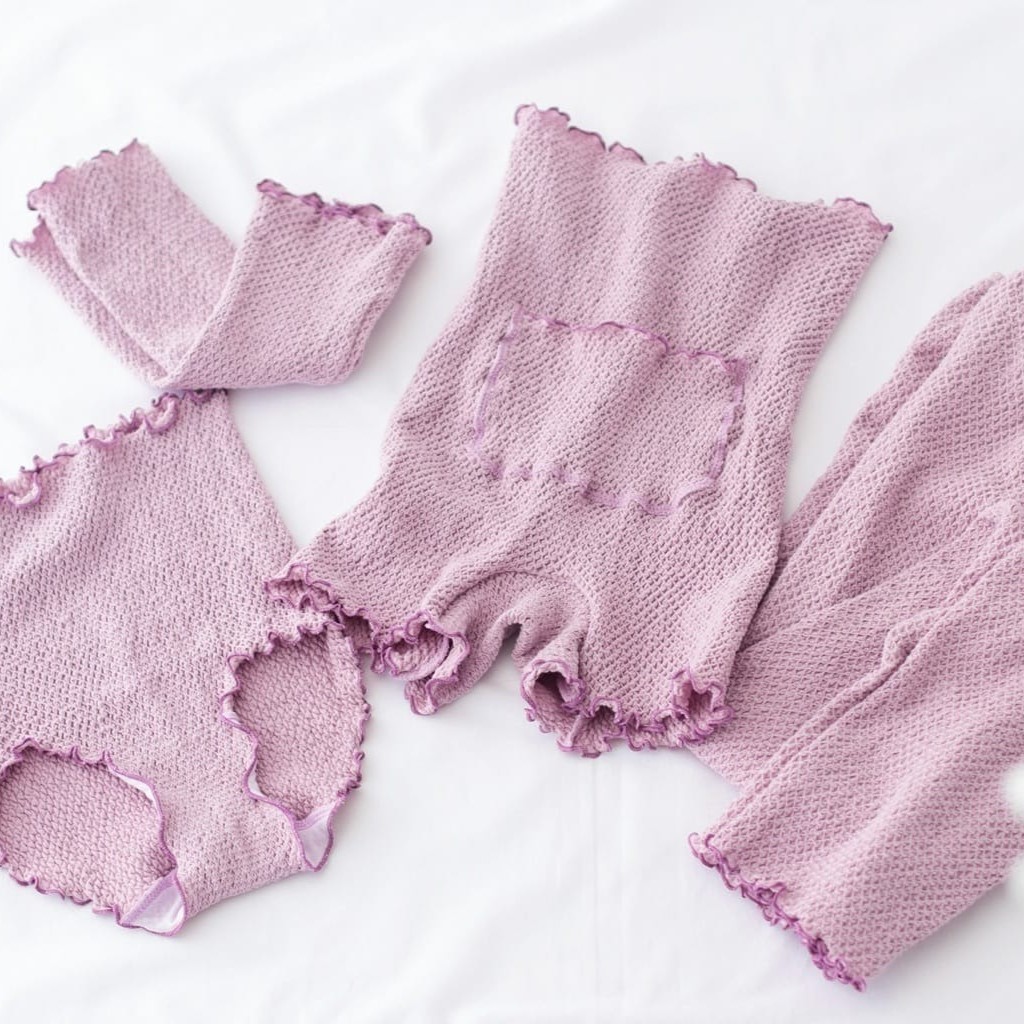 のびりらは生地の編み立て、染色、縫製をすべて国内の工場に依頼しています。伸縮性が高い生地を扱える工場は限られているため、得意分野を活かせる企業を探し、それぞれの工程ごとに別工場で作ることで、時間はかかっても高い品質を維持することが出来ています。