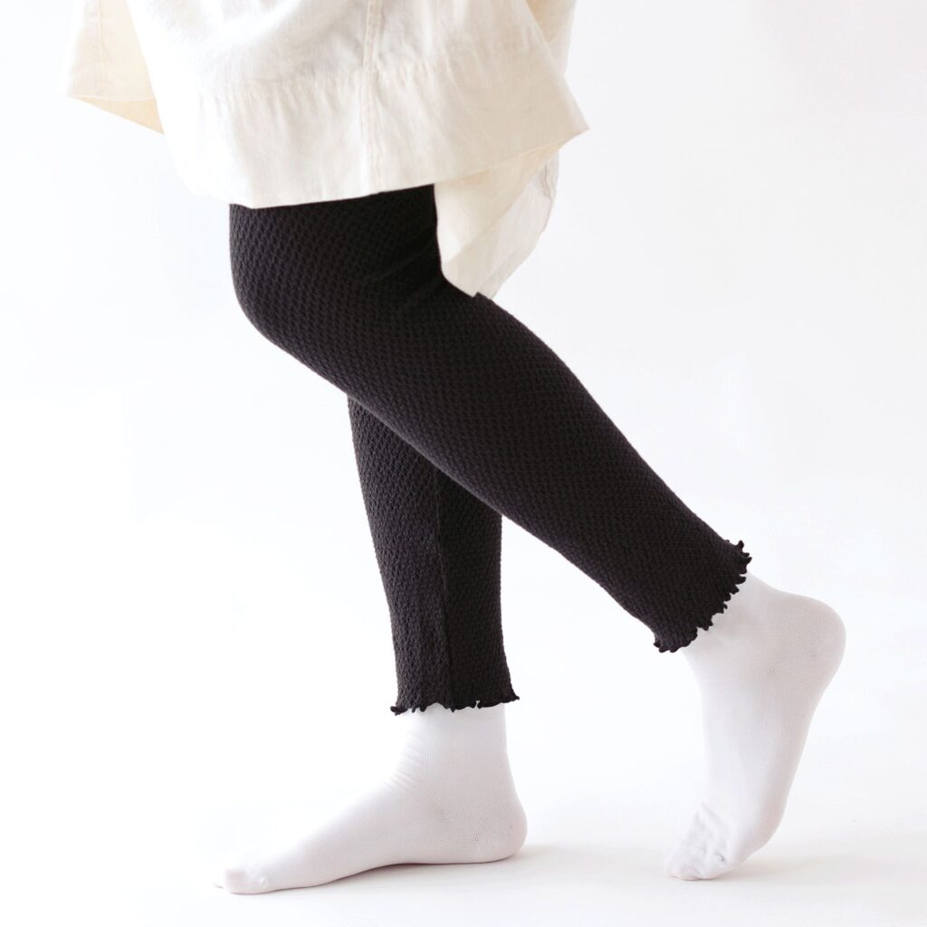 ふんわりフィットのレギンス。くるぶしまで包み込む丈感です。
