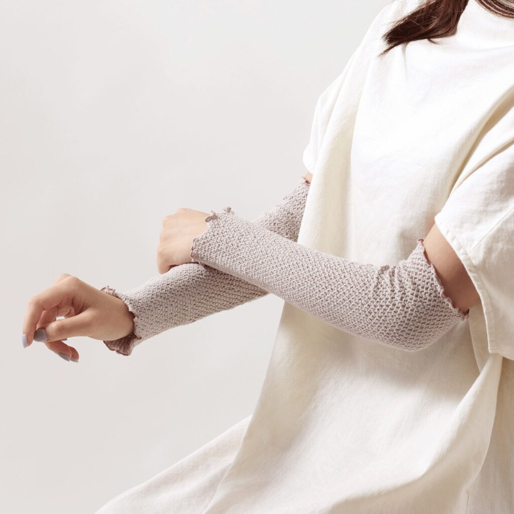 鹿の子編み調の生地は、国産メーカーとエトワール海渡が共同で開発したオリジナル品質。今では日本にほとんど残っていない希少な編み機でゆっくり丁寧に編み立てる、他では決して真似のできない柔らかな仕上がりです。