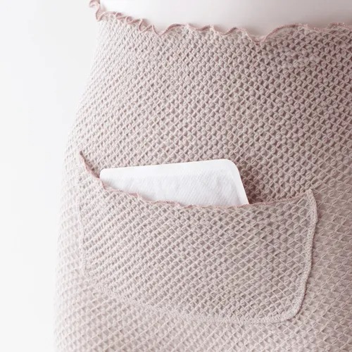 お腹側にポケットが付いているため、冬の時期はカイロをしのばせてお腹を温めることができます。