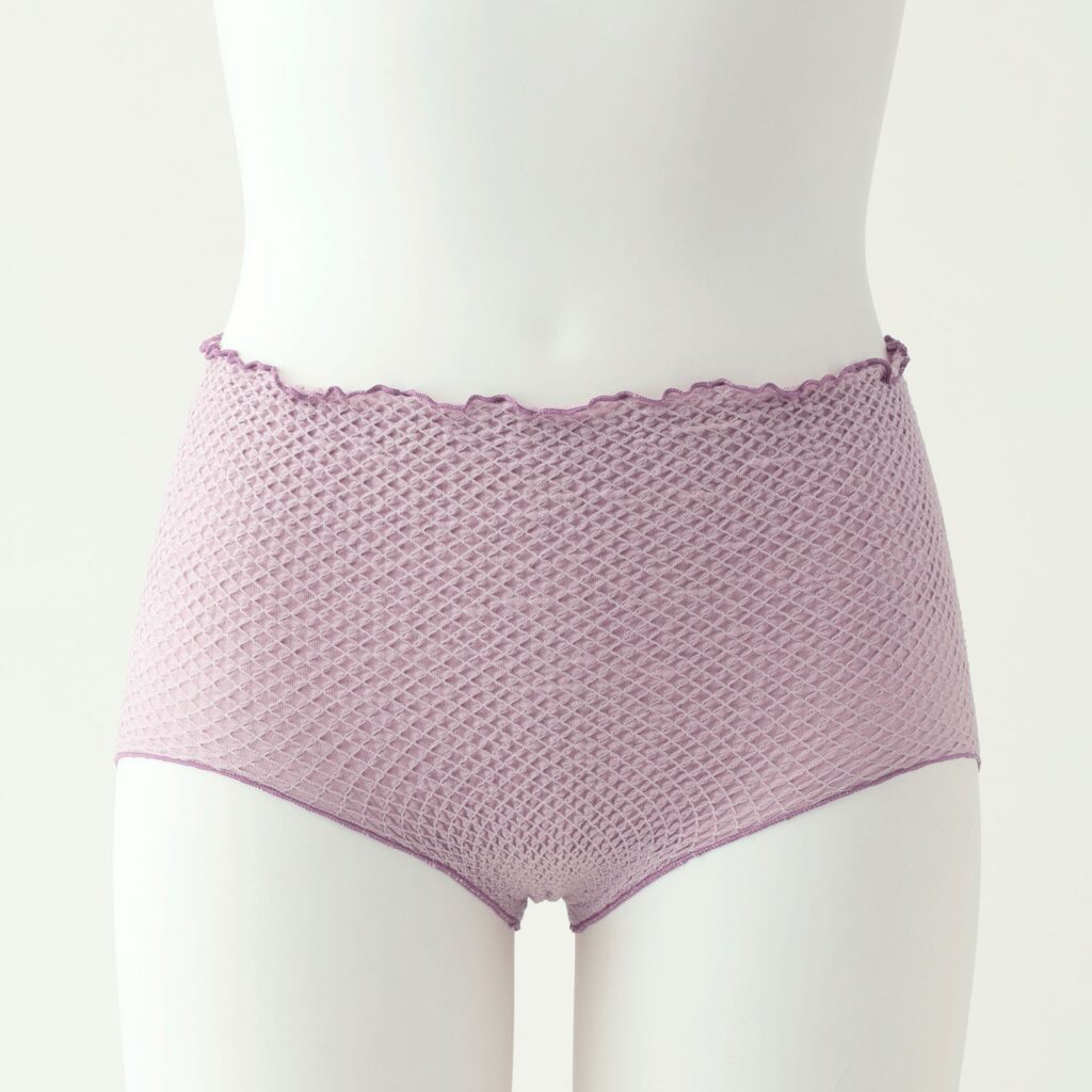 肌に触れる面はふんわりソフトな綿100%。オリジナル技術の鹿の子調の編みはタテ・ヨコ・ナナメ全方向に伸び、クッション性抜群です。ウエストも足口もゴムを使用せず、すべてメロー仕上げになっているため、締め付け感がありません。