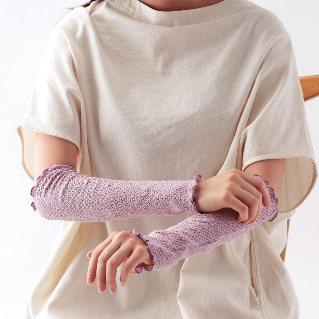 鹿の子編み調の生地は、国産メーカーとエトワール海渡が共同で開発したオリジナル品質。今では日本にほとんど残っていない希少な編み機でゆっくり丁寧に編み立てる、他では決して真似のできない柔らかな仕上がりです。