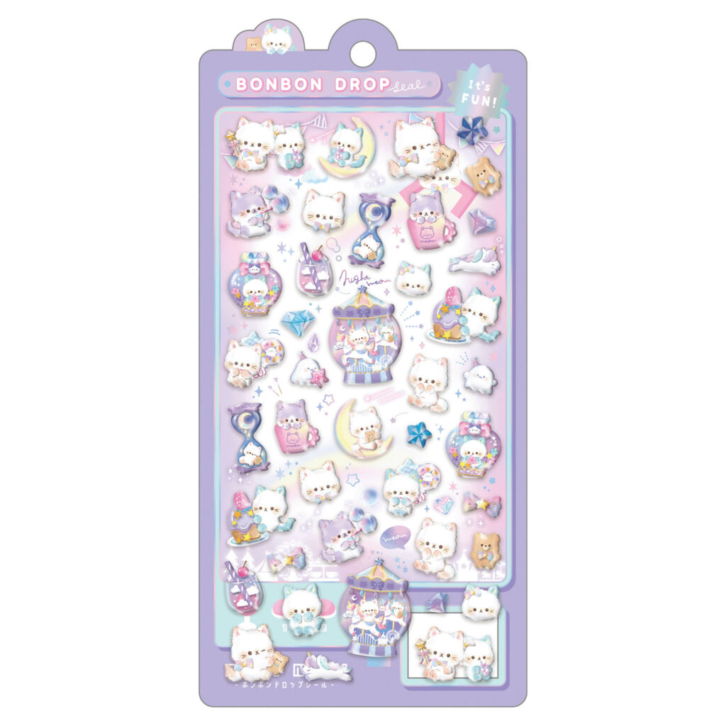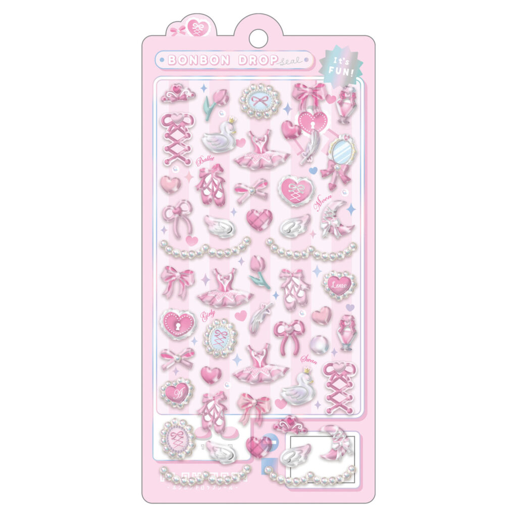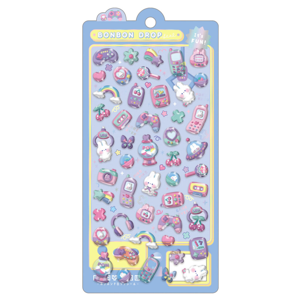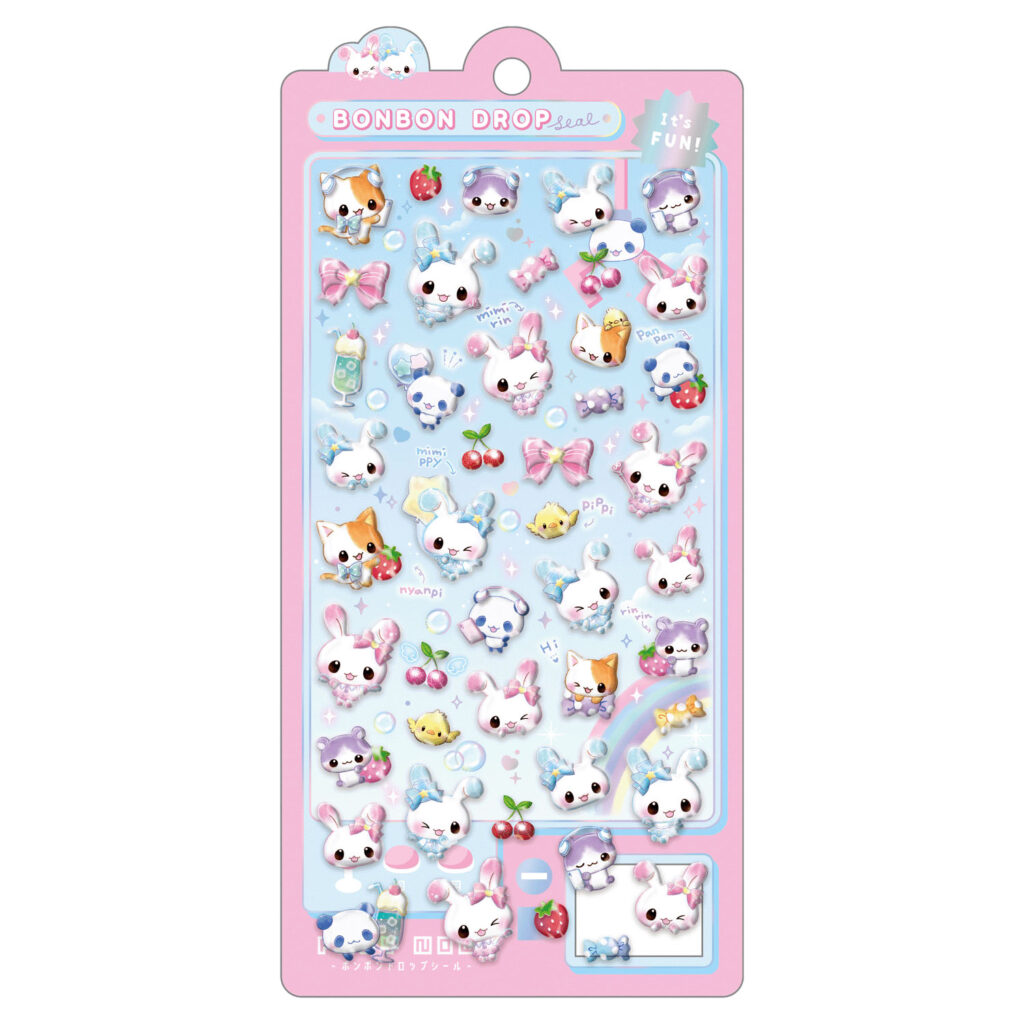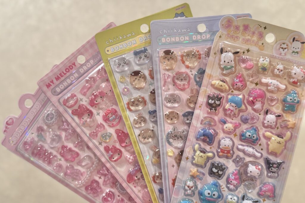 現在、売場で特に人気が高いのは、ぷっくりとした立体感と、レア感のあるデザインのシールです。中でも『ボンボンドロップシール』などの立体タイプは、キャンディのような厚みと透明感のあるキラキラした見た目が特徴で、平面シールにはない存在感があります。