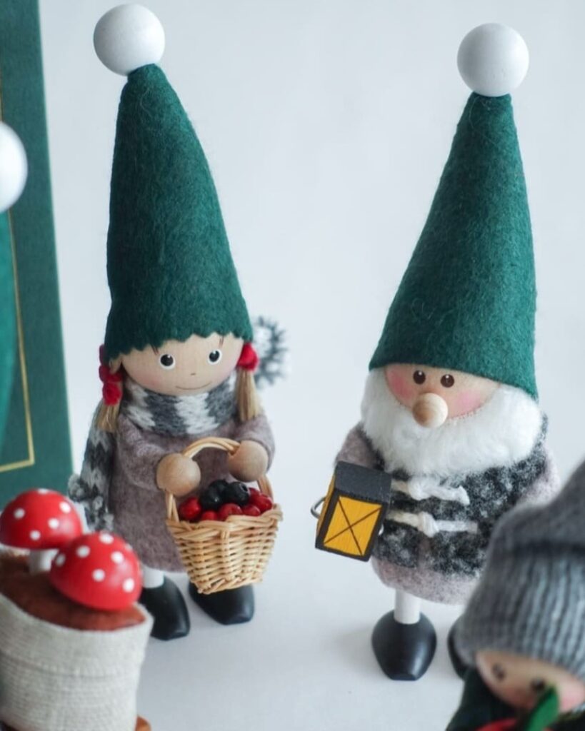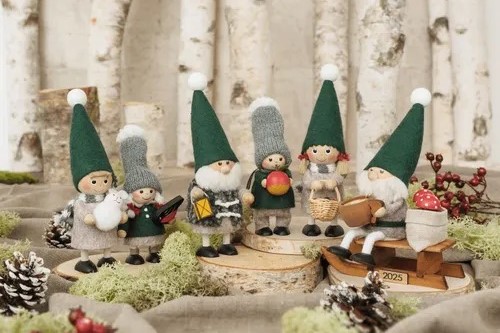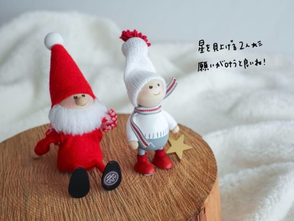 そしてやがて、風に舞う葉とともに冬の気配が訪れ、クリスマスの足音がそっと近づいてきます。「ノルディックフォレストシリーズ」のニッセたちは、グリーンの洋服や帽子を身に着けているのが特徴です。