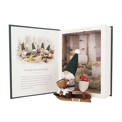 北欧の人々にとって、森は心を整え、日々の暮らしを支える大切な存在です。木々が色づき始める季節、ノルディカニッセたちは楽しげに森へと出かけていきます。ランタンで足元を照らしながら自然の恵みを探したり、森の動物たちとふれあったり。それぞれが自分のペースで、静かな森のひとときを過ごしています。
