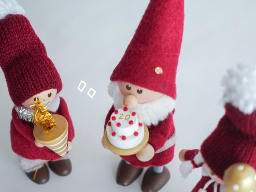 サンタが「20」と書かれた特別なケーキを用意してくれました!甘い香りに誘われて、風船を手にした女の子と、クラッカーを持った男の子が笑顔でやってきます。今日はみんな、ちょっと特別なおめかしをしています。 「せーの!」の合図でクラッカーが弾けると、ぱっと広がる笑顔と「ありがとう」の声。小さな妖精ニッセが、みなさんとの出会いに感謝の気持ちを込めて。心温まるお祝いのひとときが、今始まります。