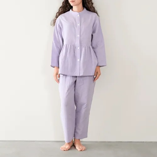 ★着る保湿クリーム 長袖前開きウエストギャザー切替パジャマ ライトパープル