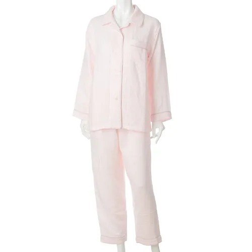 ★着る保湿クリーム 長袖前開2WAYネックパジャマ ピンク