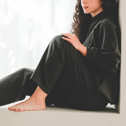 ★着る保湿クリーム 長袖モックネックパジャマ ダークグレー