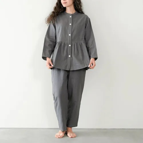 ★着る保湿クリーム 長袖前開きウエストギャザー切替パジャマ グレー