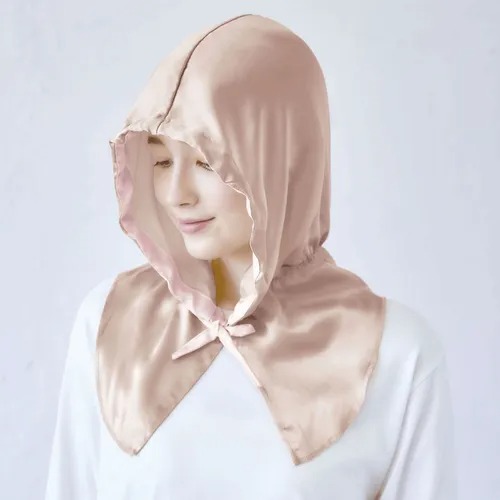 サラリとした着け心地が魅力のシルク100%ナイトキャップ。翌朝もツヤのある髪へ導きます。