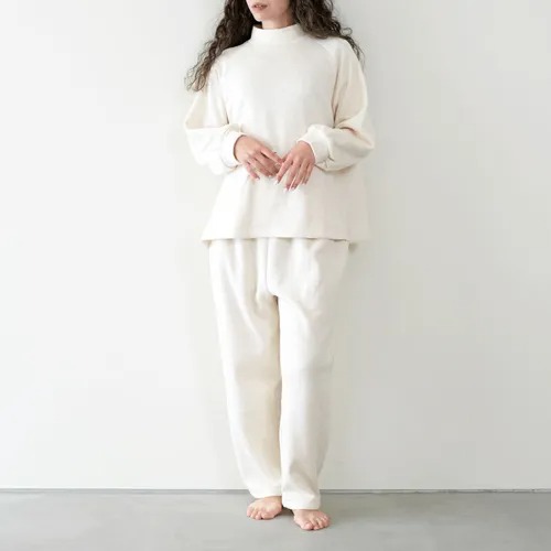 ★着る保湿クリーム 長袖モックネックパジャマ オフホワイト