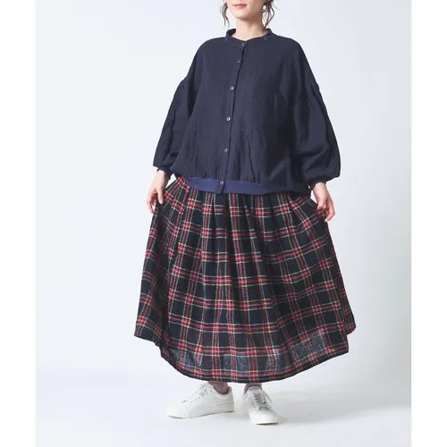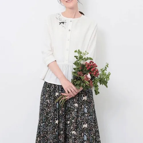 ★東京かんかん CAT刺繍コットンリネン2WAYブラウス