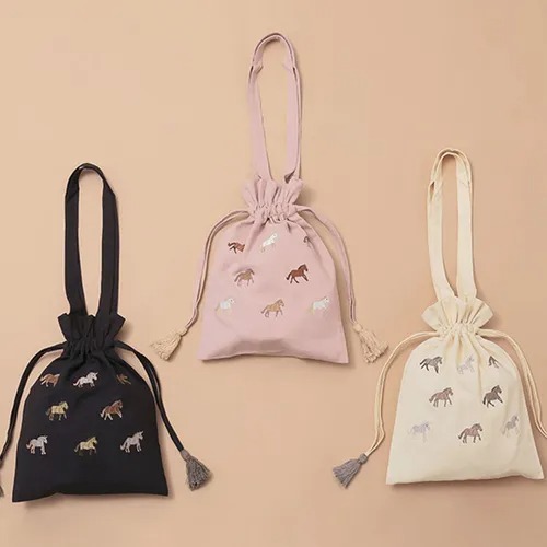★ウマ刺繍巾着トート