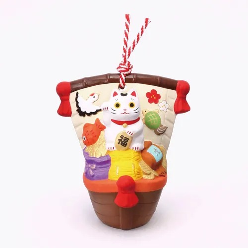 ★【薬師窯】福おいで招福招き猫 宝船土鈴