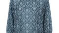 トリプルメッシュ更紗柄シャーリングハイネック七分袖プルオーバー