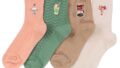 ハナエモリ 綿コーマ 総柄 クルー丈ソックス