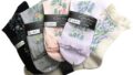 日本製 リブ バック刺しゅう ハイクルー丈 靴下