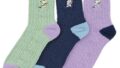 クルーソックス アンゴラ混 ボーダーバラ柄 靴下