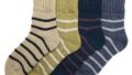 ふわぽか ロークルー丈 裏パイル 起毛ボーダー 靴下