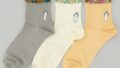 MOOMIN ロークルーソックス ゴム口逆スパ 花柄+ニョロニョロ刺繍