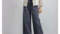 Reginetta エステル裏起毛デニムプリント ピンタックワイド
