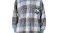 スヌーピー ふわもこ チェック柄スタンド衿ショート丈くるまろん