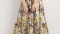 フィットパンツ通年素材 デニムプリント 股下65cm丈
