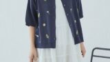 東京かんかん お花とトンボ刺繍コットンシャツワンピース