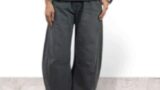 釦付きデニムプリント 大人スタイルパンツ