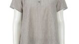 cloudnine 綿ガーゼ ストライプクリンクル加工前開き5分袖チュニック