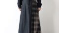 ノンノ 布帛デニム+布帛チェック 左脇プリーツ入りフレアスカート