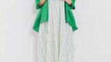 cloudnine ノンノ ネック配色ギャザー入りフレアワンピース