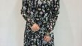 Super Beauty アシンメトリーヘム花柄プリントパワーネット素材チュニック