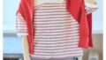 cloucnine 綿麻レーヨン パネルボーダー7分袖クルーネックブラウス