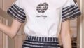 Super Beauty 胸元花刺しゅう袖ボーダー柄フリルTシャツ