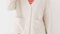 Kermu コットンガーゼ裏毛バイカラーVネックカーディガン