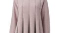 配色接ぎチュニックハイネックセーター