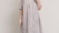 先染めチェック&ストライプ5分袖シャツワンピース