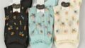 STREAM 5本指 ゆったり編み 麻混素材 ドット花柄 クルー丈 靴下