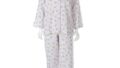 しじらダブルガーゼ 北欧風花&ネコ柄丸衿パジャマ